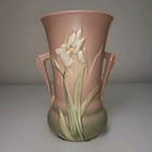 VTG Roseville Pottery Iris Vase Pink Art Deco Double Handles As Is 927-10
