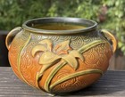 They were incorporated in 1892, with George Young as general manager. By 1896, George Young had controlling interest of the company. In 1898, they purchased the Midland Pottery Company. They opened a second plant in Zanesville, Ohio, in 1898, after purchasing the Clark Stoneware Company. Designer Ross C. Purdy introduced their first art pottery line in 1900, Rozane, which was very similar to Rookwood’s “Standard Glaze” line. The Rozane name was a combination of Roseville and Zanesville. In 1904, Roseville’s Rozane Mongol won first prize at the St. Louis Exposition. By 1905, the company was producing over 5,000 pieces a day, had over 300 people working for them and four plants. From 1904 – 1909, Frederick Rhead was the art director of Roseville. In 1915, Harry W. Rhead became Roseville’s new art director, designing the popular Donatello line. From 1917 – 1954, Frank Ferrell was the art director for Roseville, producing over 80 new lines. 1953 was the year Roseville produced its last designs.