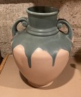 Vintage Roseville CARNELIAN I Double Handles 12" Tall Vase Green Drip Pink Nice