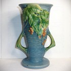 16.5 Roseville Foxglove Pattern 2 Handled Blue Vase