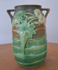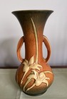 This is a vintage Roseville Pottery double-handled vase