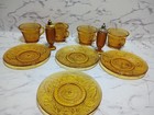 Indiana Amber Tiara Sandwich Glass Tea Cup & Saucer 8 Pc Salt & Pepper Set
