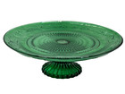 Forest Green Sandwich Glass Cake Stand 11 3/8" Top Serving Platter Footed