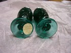 Vintage Sandwich Glass Museum SGM Green Glass Dolphin Candle Sticks