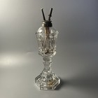 Antique Sandwich glass lamp whale oil kerosene brass collar 19th century square