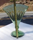 STEUBEN ART GLASS "SPANISH GREEN THREADED CONTROL BUBBLE" ftd. "FAN VASE"