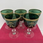 Set 4 Tiffin Franciscan Bouquet Emerald Green Wine Goblets Gold Gilt Bow Vintage