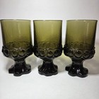 Set Of 3 Franciscan Tiffin Madeira Olive Green Footed Glasses 5.5" Vintage Heavy