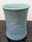 VTG VAN BRIGGLE Ming Turquoise Blue Leaf Pattern Art Pottery Vase 3.5"H SIGNED