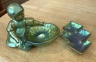 Zsolnay Hungary Lot Of 2 Eosin Iridescent Green Figurine Girl/Small Dish