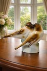 Vintage Zsolnay Hungary Pecs Brown Finches Birds Porcelain Figurine 4.5" x 3.25"