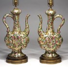 MONUMENTAL! Pair Attrib. Zsolnay Porcelain Gilt Urn Form Lamps