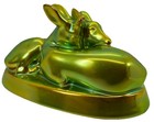 Zsolnay Hungary Eosin Iridescent Green Resting Pair of Deer Figurine 3.5”